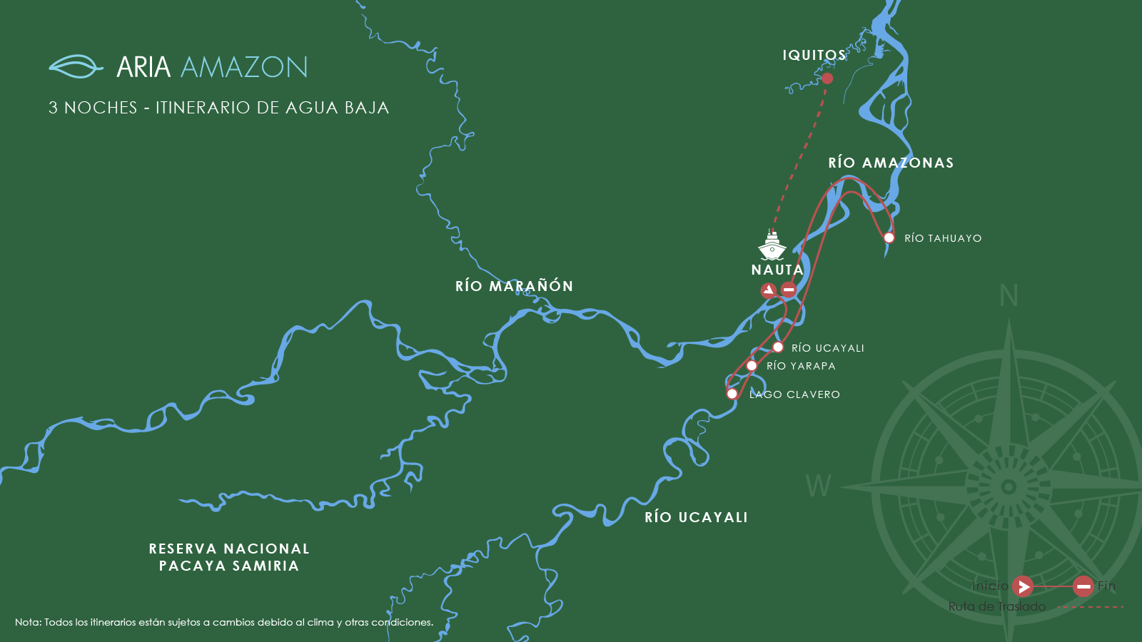 El itinerario de 3 noches en temporada de agua baja es ideal para viajeros que buscan una experiencia de lujo corta pero auténtica, combinando aventura, naturaleza y confort en el corazón de la Amazonía peruana.